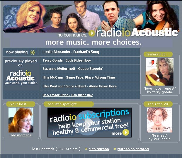 Show: Celtic HeartbeatAnd this weekend, "love, lose, repeat" is the featured CD on Zoe Montana's acoustic show on Radioio.com. See the attached picture, and go to www.radioio.com to sign up and listen to their acoustic channel. Thanks to Keith Shoemaker for clueing us in to this and thank you to Zoe!
